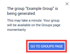 A pop-up box will let you know your group is being generated. Select Go to My Groups to close this box. It may take a few minutes for the group to build. While the group is being built, the message generating group will appear in the Number of Members column of your new group.
