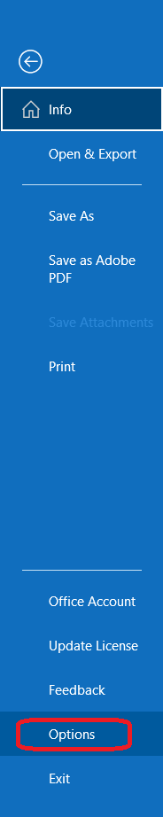 Open Outlook. Click on the File option in the menu bar. Select Options.