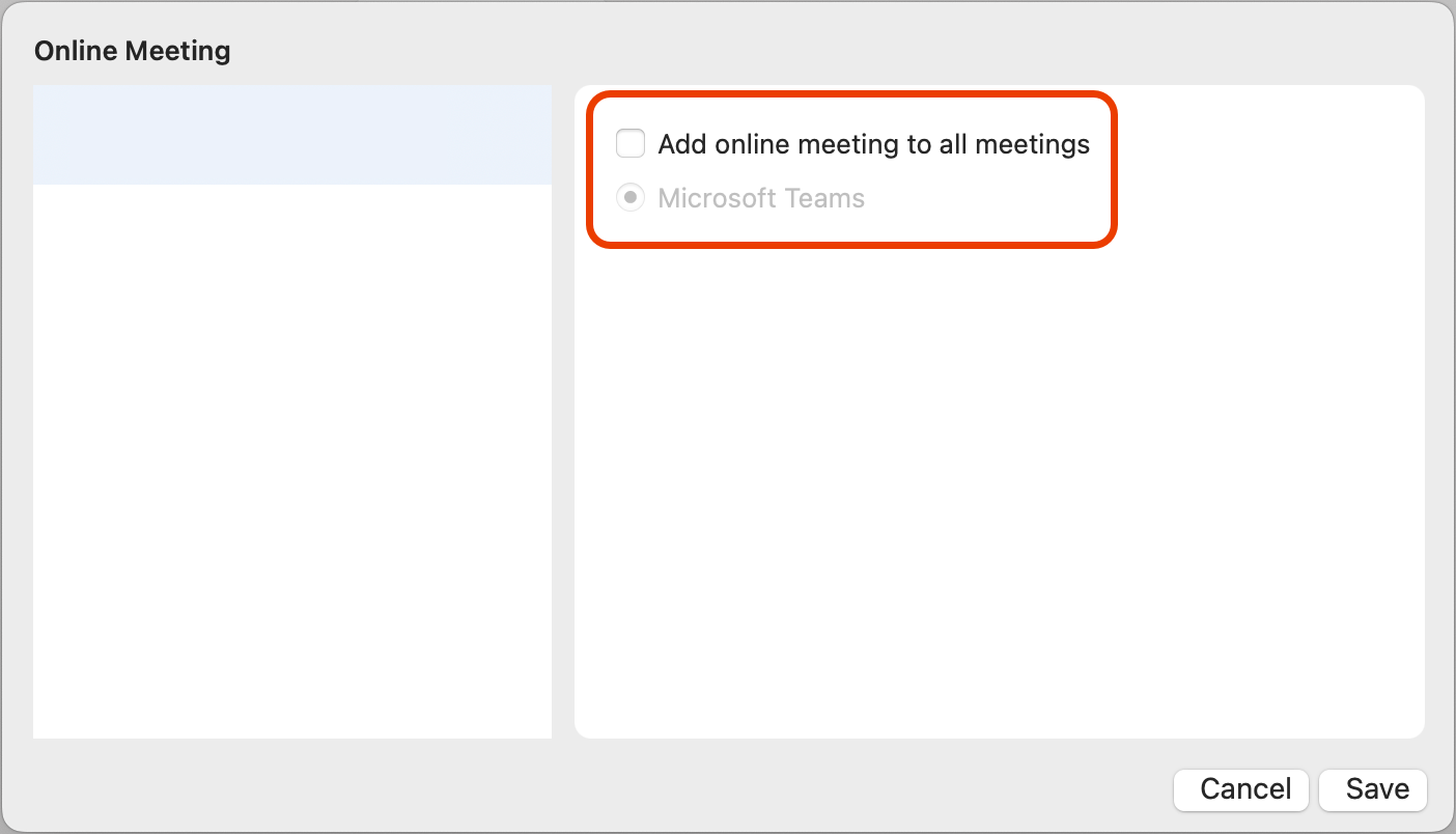 Uncheck the checkbox next to “Add online meeting to all meetings.” Click Save.