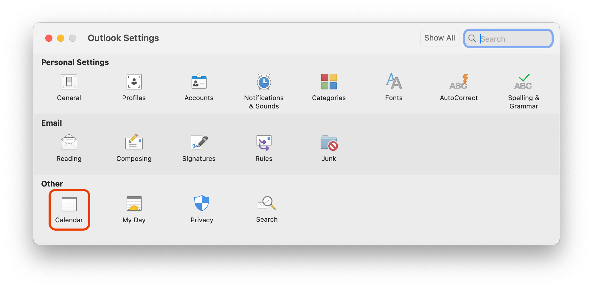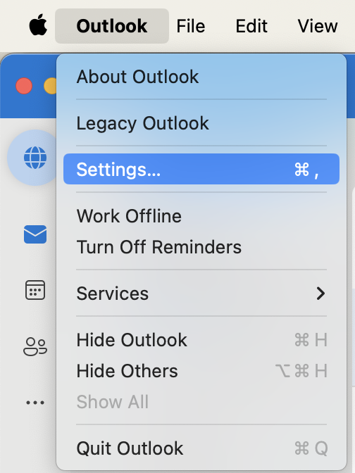 Open Outlook. Click on the Outlook option in the menu bar. Click Settings.